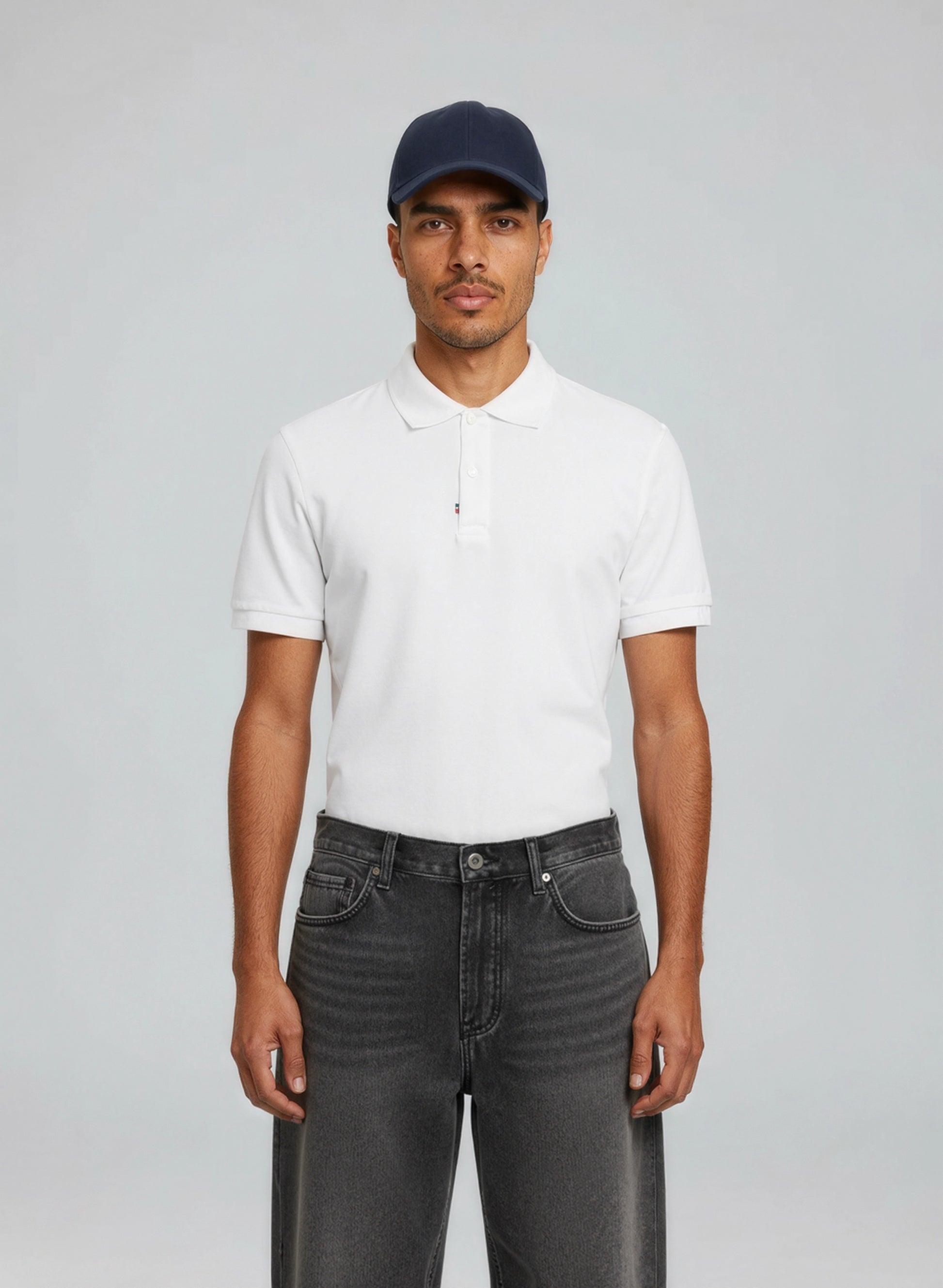 Valkoinen luonnonmukaisesta puuvillasta valmistettu Polo - Made in France